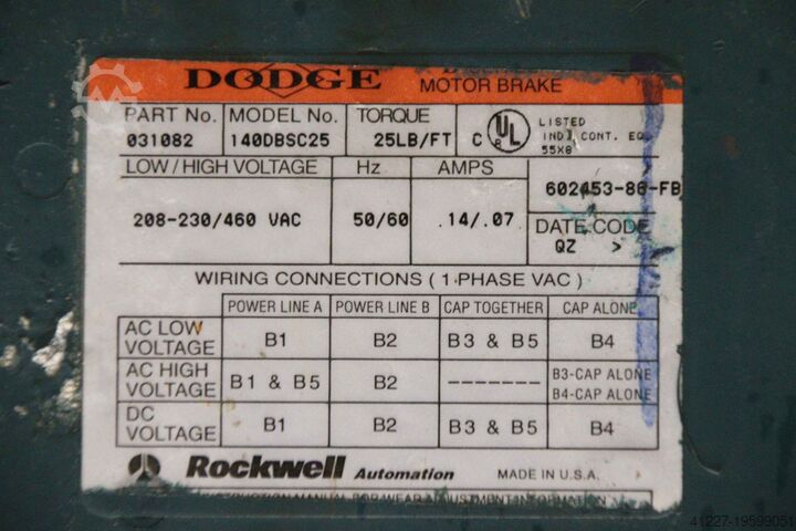 - Производитель: Reliance Electric, электродвигатель с тормозом
