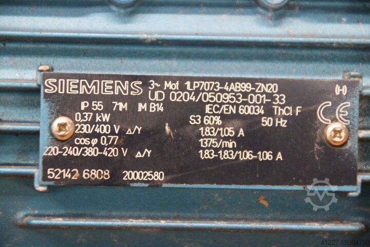 - Двигатель: Siemens, мощность 0,37 кВт