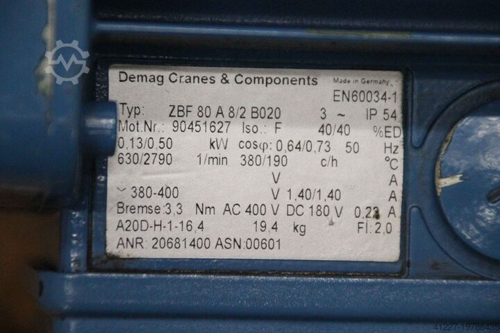 -Производитель двигателя: DEMAG Тип: ZBF80A8/2B020