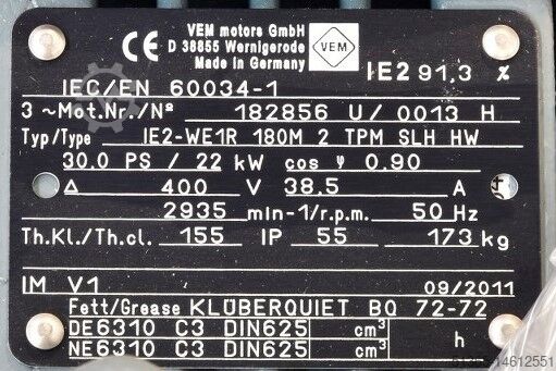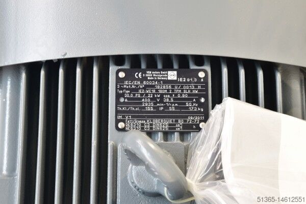 IE2-WE1R180M2TPMSLHHW / IE2-WE1R 180M 2 TPM SLH HW, трехфазный двигатель VEM, 22 кВт, 400 В — как новый