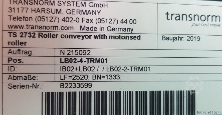 Накопительный рольганг Transnorm 24V 2520-1430-1333