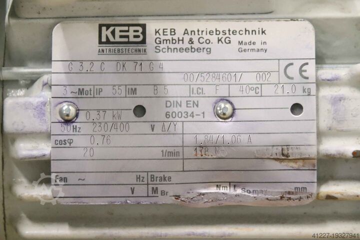 - Приводной двигатель: KEB 0,37 кВт