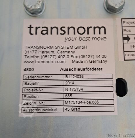 Роликовый конвейер Transnorm выгрузной конвейер 2500-700-685