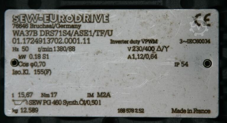 -приводной моторный конвейер: 0,37 кВт 88 об/мин.