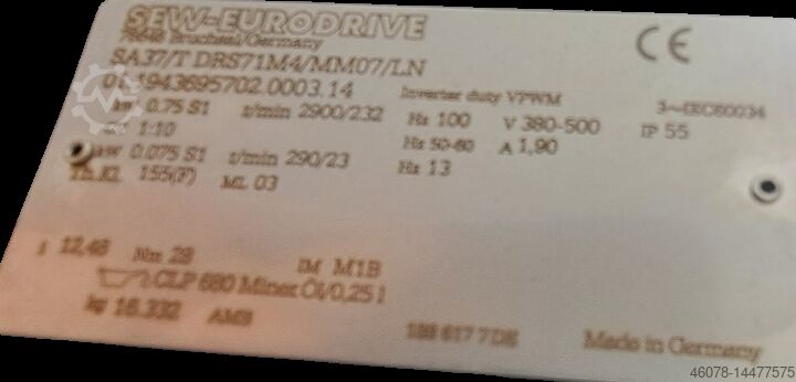 Привод: мотор-редуктор SEW, SA37/T DRS71M4/MM07/LN