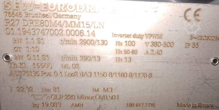 Привод: мотор-редуктор SEW, R27 DRE80M4/MM15/LN