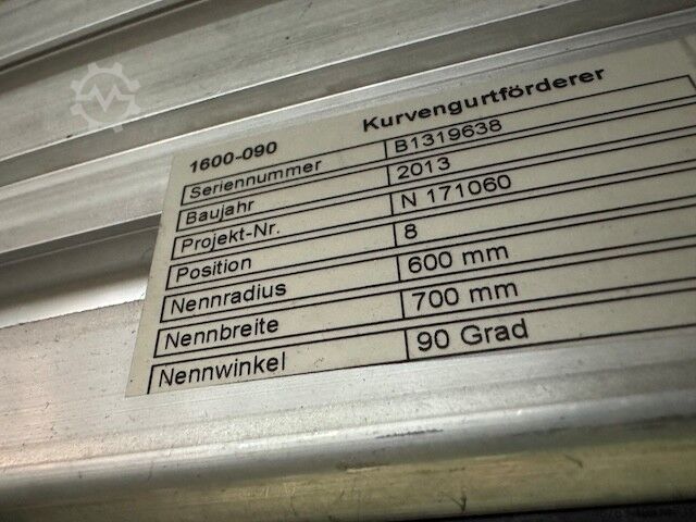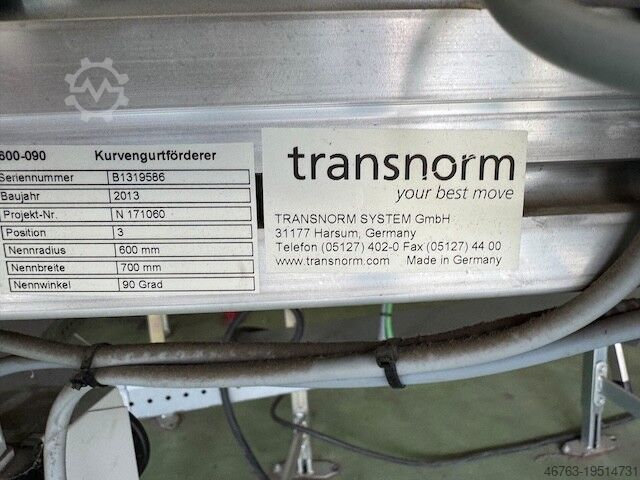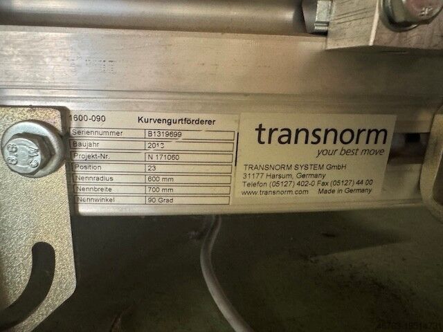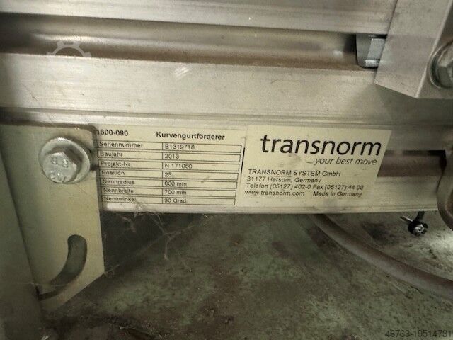 7 шт. криволинейных ленточных конвейеров, Transnorm, 90 градусов – б/у - :