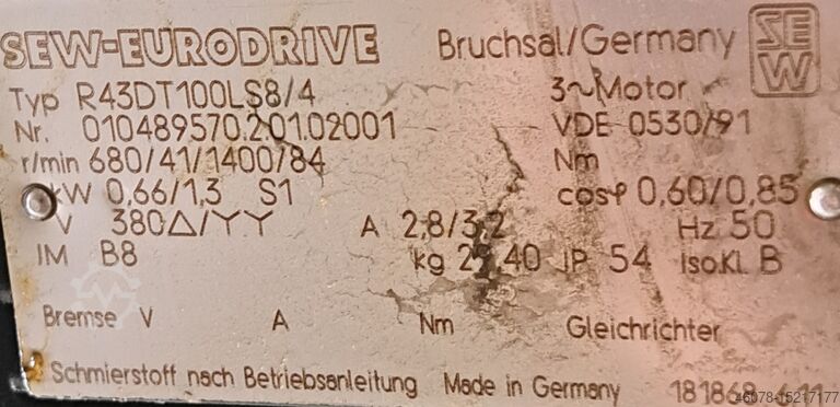 Привод: мотор-редуктор SEW, R43DT100LS8/4