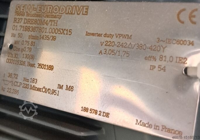 Привод: мотор-редуктор SEW, R37 DRE80M4/TH