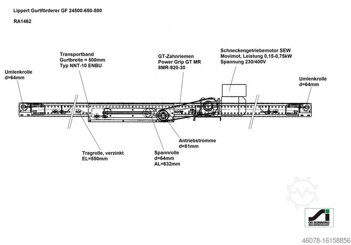 Ленточный конвейер Lippert 2001 года выпуска, находится в хорошем (подержанном) состоянии. Ленточный конвейер оснащен двигателем SEW с частотным преобразователем MOVIMOT для регулирования скорости. По запросу и за дополнительную плату могут быть установлены боковые направляющие и/или световые барьеры. Опоры не входят в комплект поставки. Они поставляются по запросу.
