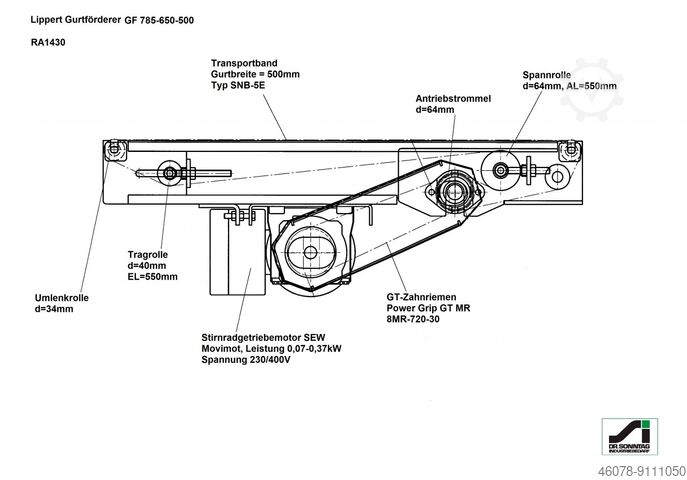 Ленточный конвейер Lippert 2001 года выпуска и находится в хорошем (подержанном) состоянии. Ленточный конвейер оснащен двигателем SEW с частотным преобразователем MOVIMOT для регулирования скорости. По запросу и за дополнительную плату могут быть установлены боковые направляющие и/или световые барьеры. Опоры не входят в комплект поставки. Они поставляются по запросу в качестве опции.