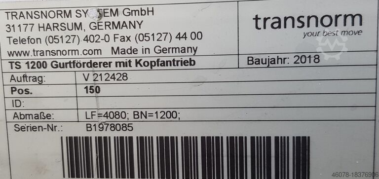 Ленточный конвейер Transnorm GF 4080-1310-1200