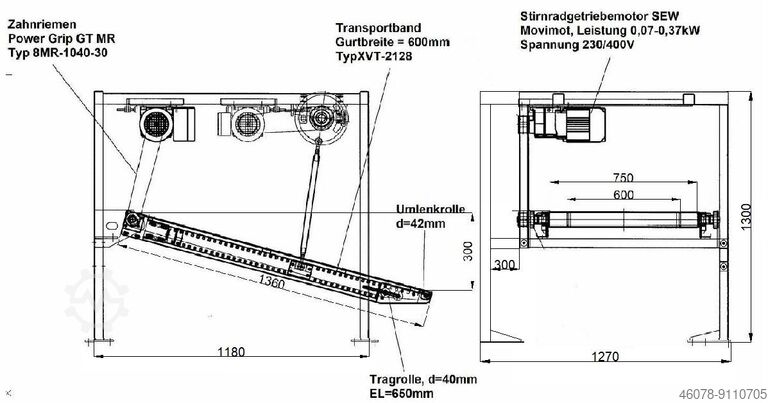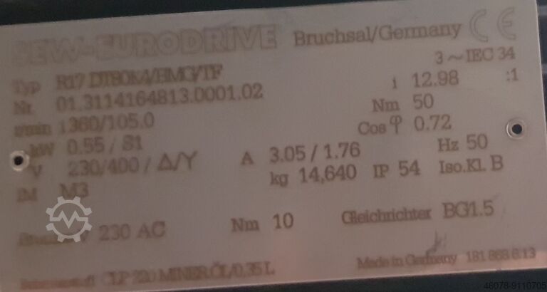 Ленточный конвейер Lippert 2001 года выпуска и находится в хорошем (подержанном) состоянии. Ленточный конвейер оснащен двигателем SEW с частотным преобразователем MOVIMOT для регулирования скорости. По запросу и за дополнительную плату могут быть установлены боковые направляющие и/или световые барьеры. Опоры не входят в комплект поставки. Они поставляются по запросу в качестве опции.