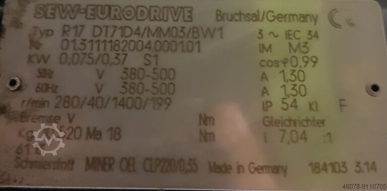 Привод: мотор-редуктор SEW S37 DT71D4/MM03/BW1