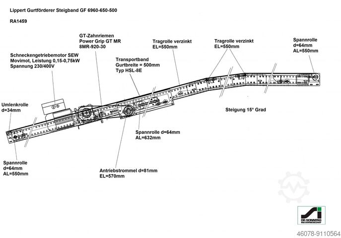 Ленточный конвейер Lippert 2001 года выпуска, находится в хорошем (подержанном) состоянии. Ленточный конвейер оснащен двигателем SEW с частотным преобразователем MOVIMOT для регулирования скорости. По запросу и за дополнительную плату могут быть установлены боковые направляющие и/или световые барьеры. Опоры не входят в комплект поставки. Они поставляются по запросу в качестве опции.