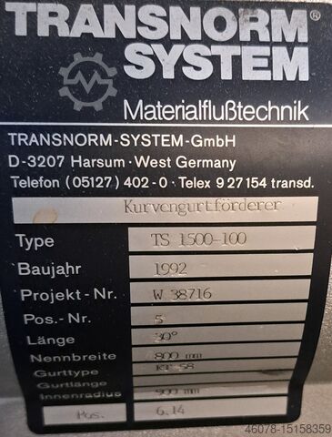 Кривой ленточный конвейер Transnorm Кривая лента 30°-800-700 IR900 правая