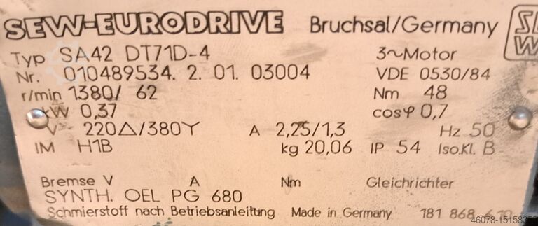 Тип двигателя: мотор-редуктор SEW, SA42 DT71D-4