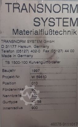 Транснорм ленточный кривой конвейер левый 90°-750-550-IR900