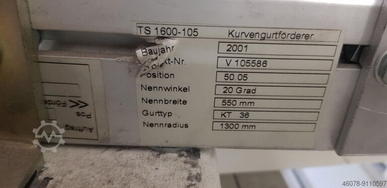 Обозначение типа: Ленточный кривой конвейер TS 1600-105