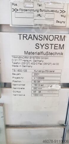 Транснорм ленточный кривой конвейер левый GKF 180°-750-550 IR1000