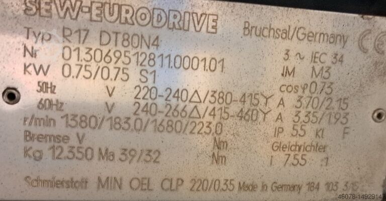 Привод: мотор-редуктор SEW, R17 DT80N4