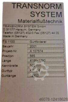 Наклонный ленточный конвейер Transnorm Наклонный ленточный конвейер GF 6000-600-500