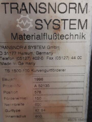 Транснорм ленточный конвейер изогнутый правый 160°-780-600-IR600