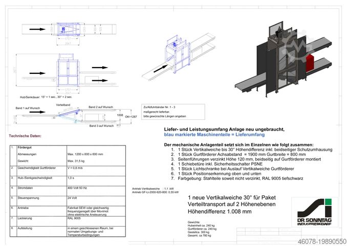 Lippert ленточный конвейер, вертикальный распределительный клапан для распределения на 2 уровня GF 3700-920-800