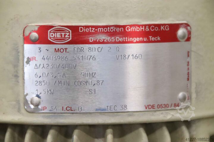 - Двигатель: Dietz 1,5 кВт 2850 об/мин