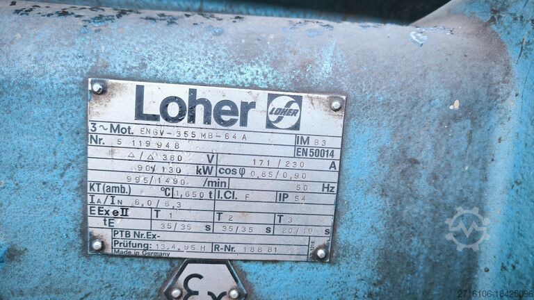 Насос Bornemann pump, type W7T.2ZK-130, 6,5bar, 425 m3/h, электродвигатель LOHER, ENGV-355MB-64A, 90/130 kW, исправное состояние.