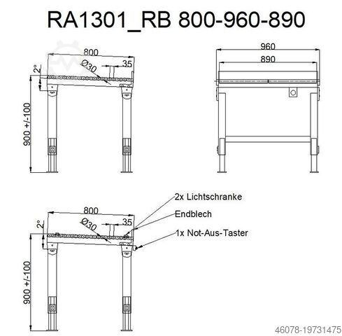 Высота конструкции/уровень ленты (BH): 900 мм, регулируется по высоте на +/- 100 мм