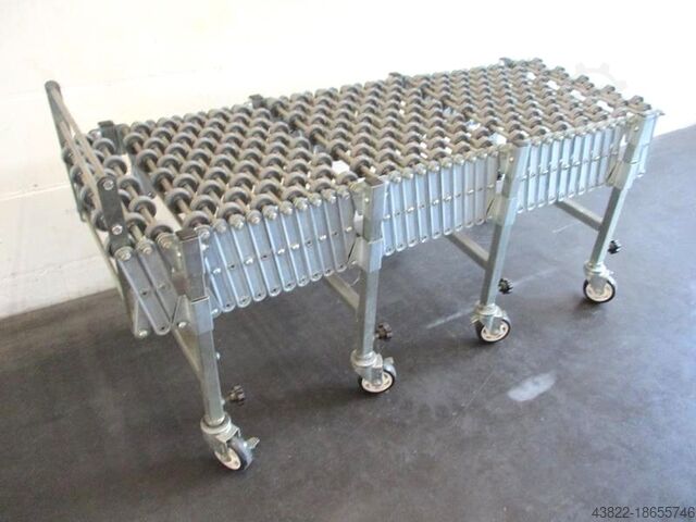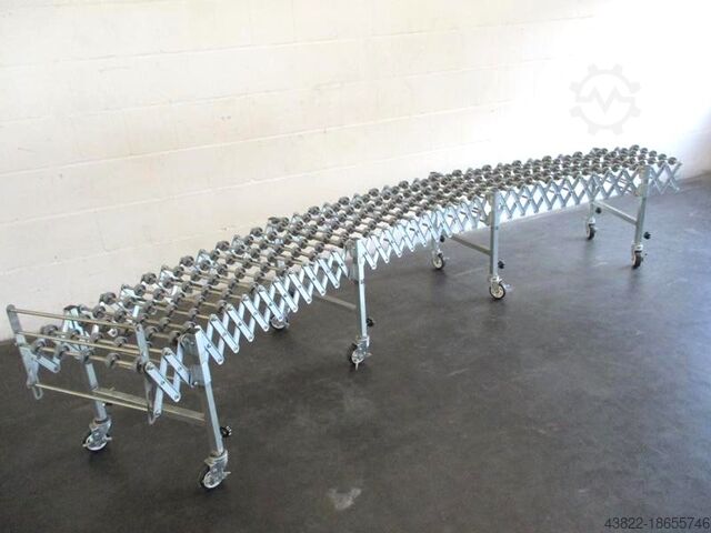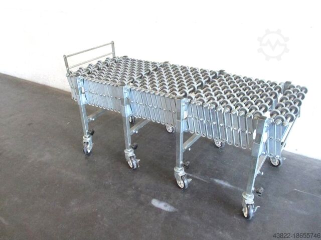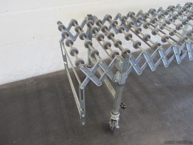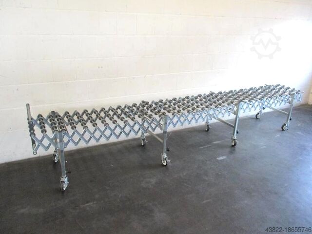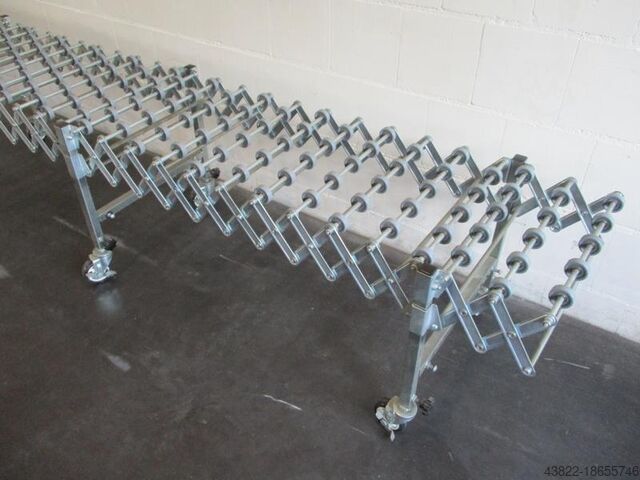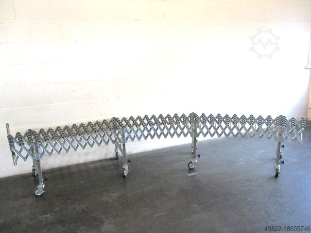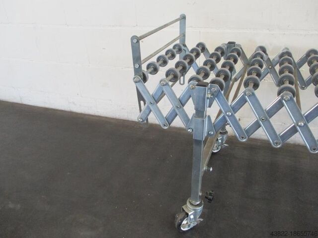 На конце ножничного роликового конвейера имеется стопорное устройство, которое также можно сложить.