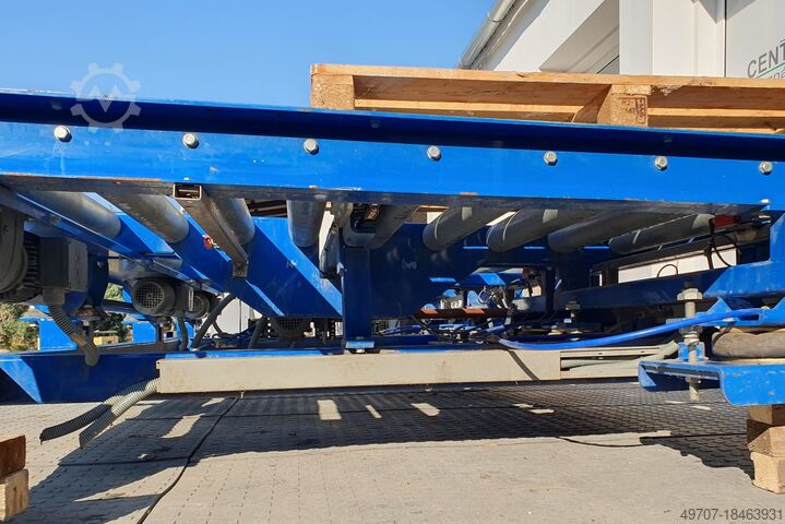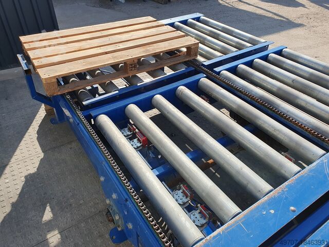 Максимальная высота составляет 55 мм, приподнятый ряд роликов транспортирует поддоны под углом 90°.