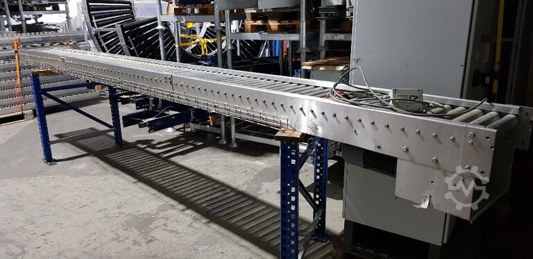 Роликовый конвейер с цепным приводом находится в хорошем состоянии (б/у) и полностью исправен. На нем установлен мотор-редуктор марки SEW. Ножки в комплект поставки не входят. Они поставляются по запросу.