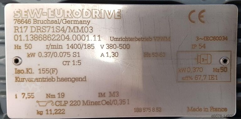 Тип двигателя: мотор-редуктор SEW, R17DT71D4/TH