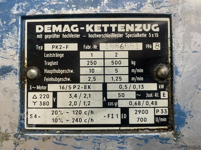 Электрический цепной кран E, грузоподъемность 500 кг, подъемный механизм DEMAG