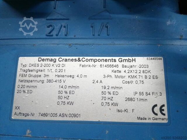 Электрическая цепная таль, электрическая таль, кран DEMAG тип DKES 2-200 K V2 DI