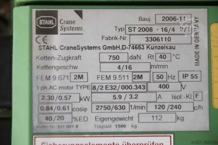 -Цепная таль: Тип ST 2008-16/4 2/1