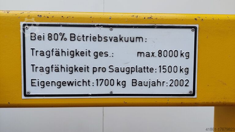 - Грузоподъемность с 7 всасывающими пластинами при рабочем вакууме 80% 5 тонн