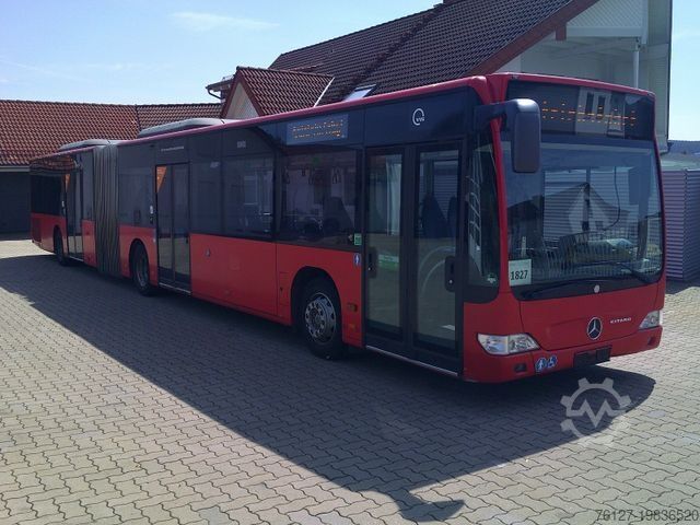 No. 1827, Mercedes Benz O 530 G Citaro low-floor articulated bus, first registered: 08/2008, powerful 360 HP Mercedes Euro 5 engine, ZF automatic transmission, ABS, ASR, retarder, auxiliary heater, large AIR CONDITIONING unit, LED destination display, 56 seats / 98 standing places, wheelchair ramp, LED destination display, good condition, immediately available, red color, Ready for immediate delivery! German bus! German registration! Viewing only by prior telephone arrangement! Many more quality buses available at: