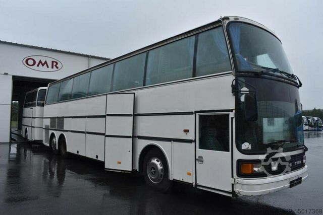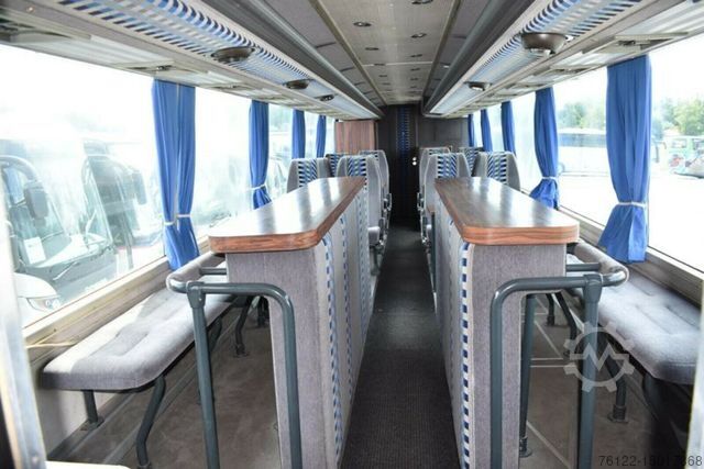 This SG 221 HDS was intended for commuter traffic in southern Europe, but remained a one-off and formed the basis for two other high-deckers of a special kind: the S 215 HDS and the S 216 HDS would soon bring Kässbohrer many new customers. This bus also brought the S into play: it stands for Super, because these new high-deckers lived up to their name: with a height of 3.63 meters, the high passenger compartment created an even larger space in which more luggage (16 cubic meters) and more service equipment could be accommodated. And additional tanks were no problem either. Regardless of which of the two Super Setras the bus operator chose, the fascinating thing about the two new Ulm buses from an engineering perspective was the fact that, apart from the front section, they were 100 percent based on the 200 series modular system and were identical to the other Setra coaches. The 216 HDS offered space for a maximum of 16 rows of seats. In direct comparison, the version with an underfloor cockpit had more space. Kässbohrer had a vision with the Setra SG 221 HDS, but the ban on driving articulated buses through France made the Ulm-based company rethink in favor of solo vehicles. The SG 221 HDS was then used as a demonstration and information bus at trade fairs and for conferences, and with the generously equipped kitchen on board, it was the point of contact for representatives and customers.