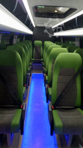 Large luggage compartment, seats on raised floor – Flat floor, passenger capacity up to 22+1