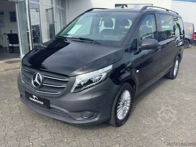 XZ1 model generation 1, JP2 driver assistance package, EZ5 parking package, FP4 chrome interior package, J2A acoustic environment protection, FR8 rear view camera, H15 heated seats for front passenger, H16 heated seats for driver, W65 tailgate, E07 hill start assist, LA2 headlight assistant, JW5 lane keeping assistant, EZ8 parktronic, H00 warm air duct to the passenger compartment, HZ0 electric auxiliary heater, CL3 leather steering wheel, CL4 multifunction steering wheel with trip computer, FK2 chrome-plated radiator grille, JK3 instrument cluster (pixel matrix display), MS1 cruise control, LG2 LED intelligent light system, JF1 rain sensor, F68 heated and electrically adjustable outside mirrors, D12 roof rails, SH1 thorax-pelvis sidebag driver, SH9 windowbags for driver and front passenger, SA6 passenger airbag, SH2 thorax-pelvis sidebag passenger, E1D Digital radio (DAB), U71 3-seater bench seat 1st row with folding outer seat, U63 Passenger compartment seating 3-seater bench seat 2nd row, SB1 Comfort driver's seat, SB2 Comfort passenger seat, V36 Roof paneling, MK9 Speed limit 160 km/h, IL5 Left-hand drive, RM4 Comfort tires, F66 Lockable glove compartment, H20 Heat-insulating glass all around, LE1 Adaptive brake light, BA3 Active Brake Assist, JW8 Attention Assist, C70 Pedestrian protection, EY5 Mercedes-Benz emergency call system, JA7 Blind spot assistant, EL9 2-way loudspeakers front and rear, E7L AC charging 11 kW / DC charging 110 kW, T14 Active sliding door lock, EA4 Audio 40, CF9 Basic chassis Plus, IB6 C447 Vito/V-Class series, ME4 Electric motor 150 kW / battery 90 kWh (usable), W29 fixed rear window, W78 window in tailgate/rear door with wiper and washer system, W16 front left window, fixed in side wall/sliding door, W17 front right window, fixed in side wall/sliding door, X16 weight variant 3,500 kg, J55 seat belt warning device for front passenger, HH9 semi-automatic air conditioning TEMPMATIC, T74 grab handle for entry, VH1 grab handle in the rear, T75 grab handles for entry for driver and front passenger, BH1 HOLD function, LD9 interior light(s) in the rear, F61 interior mirror, V23 interior trim, upscale version, T70 child safety lock on doors in the passenger compartment, HI1 climate zone 1 (cold/comfort), ZM4 station wagon, JH3 communication module (LTE) for digital services, VU9 black artificial leather, IL6 metallic paint, XM0 Model update