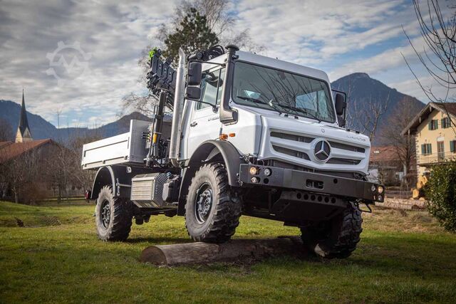 This all-terrain Unimog 4023 takes you to any job site and, with its optimally dimensioned loading crane, is a tireless helper on board that actively supports you in your lifting and assembly work and brings you forward economically.