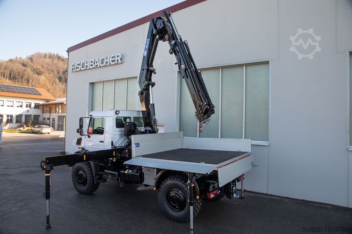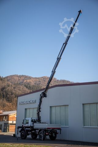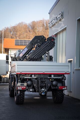 Unimog U5023 with HMF crane with 5 extensions and CABLE WINCH! - also available with work basket!