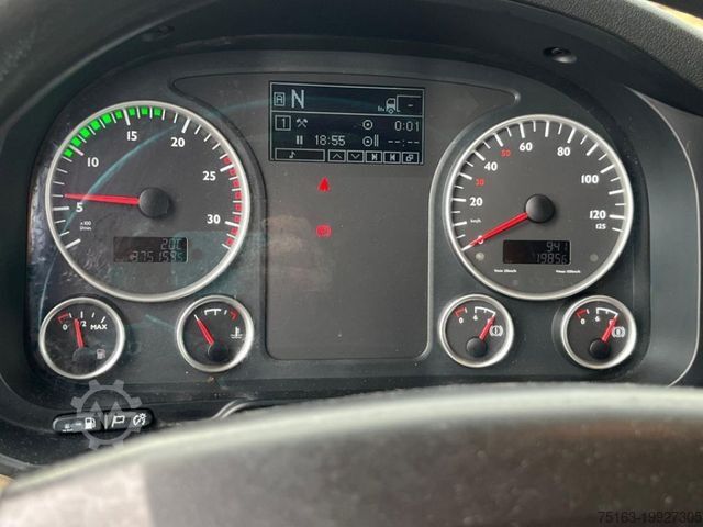 ----Special Superstructure: Crane: Palfinger PK 24001-KC (Single Link Plus), max. lifting capacity 5.8 t, foldable, radio remote + walk-around controls, 4x hydraulic extension (working height approx. 15 m), fully hydraulic outriggers, oil cooler, 6th + 7th control circuit for rotator and stone grapple function. Read load chart: lifts 5.6 t at 4.1 m, 3.6 t at 6.1 m, 2.65 t at 8.1 m, 1.05 t at 10.2 m, 1.66 t at 12.4 m.----Body: BDF swap body frame (galvanized) for 7.45 m BDF swap bodies.