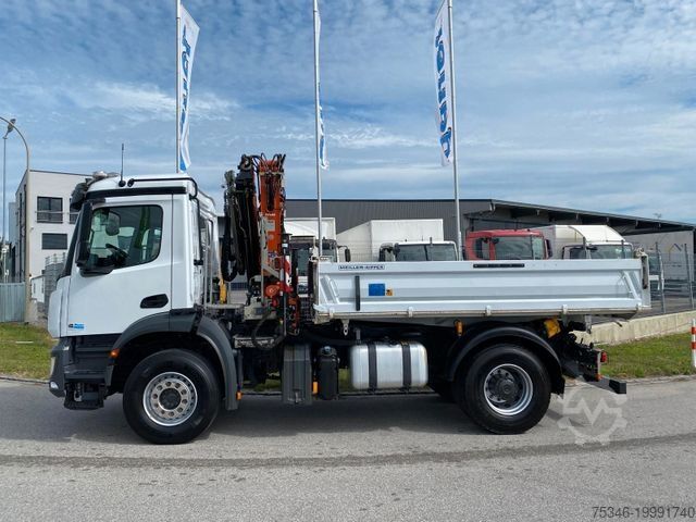 Very well-maintained Mercedes Benz 18-ton truck equipped with a Meiller 3-way tipper and Atlas AK 135.2E - 10.2/3/V103 loader crane, showing only 143 operating hours. Features include radio remote control, three hydraulic extensions, hydraulic outreach up to 10.1 m, and just 74,000 original km. Payload of 6,870 kg. Automatic transmission, Rockinger towing jaw, air conditioning, and much more. In top condition!