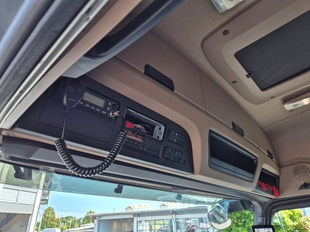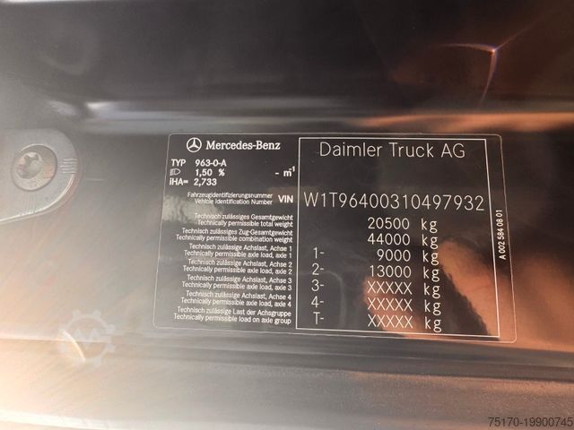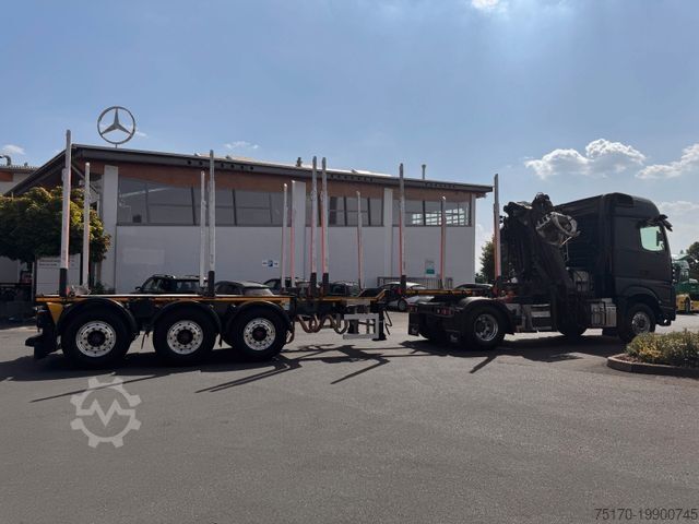 For inquiries about the vehicle, Mr. Seidel will be happy to assist you (by phone). ---- Mercedes Benz Arocs 1853 LS 4x4 HAD Tractor Unit + Doll H3L-14X Extendable Long Timber Trailer ---- Crane: Palfinger Q170Z96 * 1,898 operating hours ---- A0H Protection plate for HAD high-pressure lines A1E Front axle 9.0 t A1H Hydraulic Auxiliary Drive (HAD) A2I Rear axle, 485 ring gear, hypoid, 13.0 t A5C Axle ratio i = 2.733 B1B Electronic braking system with ABS and ASR B2A Disc brakes on front and rear axles B2D Disc brakes with partial protection B2X Electronic parking brake B3H Secondary water retarder B4L Air tank, aluminum, complete B5B Trailer brake, two-line B5D Trailer Stability Assist (TSA) C2N Wheelbase 4500 mm CLW Steering oil cooling D0A Leather steering wheel D0L Smoker package D0S Compressed air connection in cab D1C Comfort suspension seat, driver D1P Comfort suspension seat, passenger D3A Comfort bed, upper, wide, adjustable D3B Comfort bed, lower D3M PremiumComfort mattress, lower D3N PremiumComfort mattress, upper D3R Leather seat cover D4Q Shaving mirror D4S Electric sunblind, one-piece, windscreen D4Z Side sunblind, driver and passenger side D5F LED ambient lighting, for driving and living D5O StyleLine D5Z Engine tunnel carpet D6C Electric stationary air conditioning D6G Automatic climate control D6I Residual heat utilization D6M Additional hot water heater, cab D7V Table, passenger side D8M Electric sliding/lifting roof, glass version E5K MirrorCam switch, at bed E7F Cable remote for air suspension F0T Illuminated Mercedes star F1H L-cab BigSpace, 2.50 m, level floor F3C Comfort cab suspension, air-sprung F5L Exterior sun visor, transparent F6I Heated front mirror F6Q Air horn F6T MirrorCam F8E Central locking system F8V Light sensor F8W Rain sensor G0T Predictive Powertrain Control G0W Off-road drive program G2E Transmission G 281-12/14.93-1.0 G5A Single-disc clutch G5G Mercedes PowerShift 3 I2H Tubeless tires, 315/80 R 22.5 rear axle I2P Tubeless tires, 385/65 R 22.5 front/lead/support axle I4A Wheel configuration 4x2 I6X Air suspension, rear axle J2G Digital radio J2J Sound system J2O Comfort telephony, wireless charging J2U Navigation system J2Y CB radio, 24 V J3U Fleetboard Manager App pre-requisite J3V Truck Data Center 7 J3Z Axle load measuring device J6C Multimedia cockpit, interactive K1M Fuel tank 510 l, left, 650 x 700 x 1300 mm, aluminum K3W AdBlue tank 75 l, left L1A Bi-xenon headlights L1D Automatic high/low beam and bend lighting L1I Fog lights, LED daytime running lights L1P LED rear lights L2H Side marker lights, flashing L3Z Headlight cleaning system L9A Preparation for beacon lights L9C Preparation for additional roof headlights L9D Preparation for additional indicator lights L9G Preparation for work lights, rear of cab M3E Engine OM471, inline 6, 12.8 l, 390 kW (530 hp), 2600 Nm M5B 2nd generation OM471 engine M5C Engine version Euro VI, D M5V High Performance Engine Brake N1J NA MB 123-10c, MPA, N/M speed O3C Safety Package O7U Climate Package O7V Media Package O7W Stowage Package O8K Driving Package O8L Comfort Packa