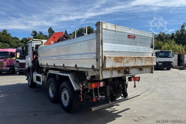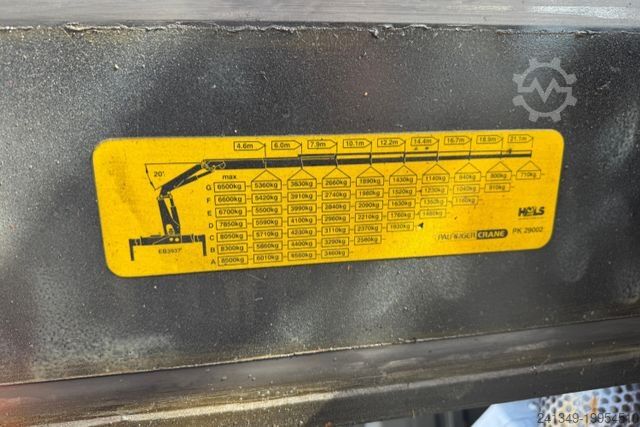 Crane: ----- Air conditioning - lift axle - steering axle - trailer hitch - crane Palfinger PK29002 with endless rotation - 4x hydraulic, 3x mechanical with grab line - 3-way tipper Moser - snow plow incl. snow plow mounting plate. Suspension: Leaf-air