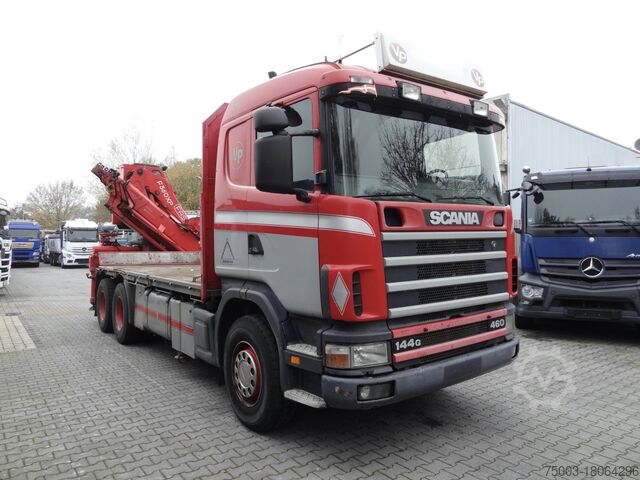 Scania R144 460 V8 6X4 Flatbed with Heavy-Duty Crane